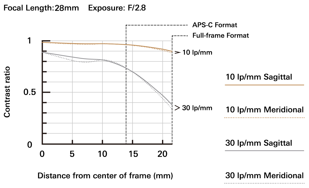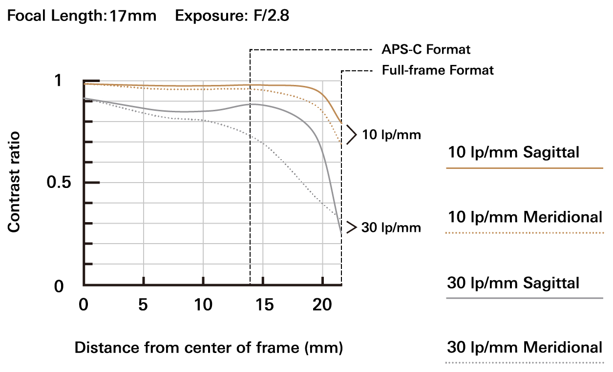 Rentang zoom dramatis 17–28mm menambah dimensi baru dalam memotret lanskap, cityscape, pegunungan, panorama indah—serta potret kelompok dan interior bangunan. Meski berukuran ringkas, lensa ini menawarkan performa optik yang mengagumkan. Elemen lensa LD (Low Dispersion) dan XLD (eXtra Low Dispersion) yang ditempatkan secara strategis mampu menekan aberasi kromatik secara menyeluruh. Kombinasi focal length ultra wide-angle dan MOD (Minimum Object Distance) 0,19m (7,5 inci) pada ujung wide-angle memungkinkan ekspresi fotografi yang kaya dan kreatif.